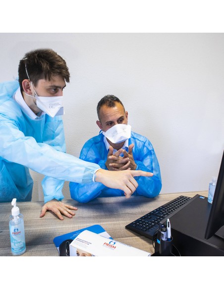 It is intended to protect the wearer against inhalation of both droplets and airborne particles. This mask is used to protect its wearer from dust, and aerosols (fine droplets suspended in the air) and to avoid the projection towards the surroundings of the droplets emitted by the same wearer.