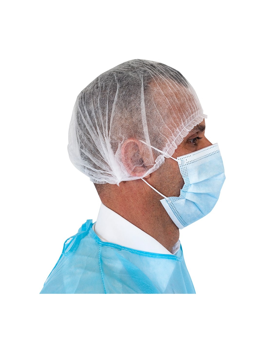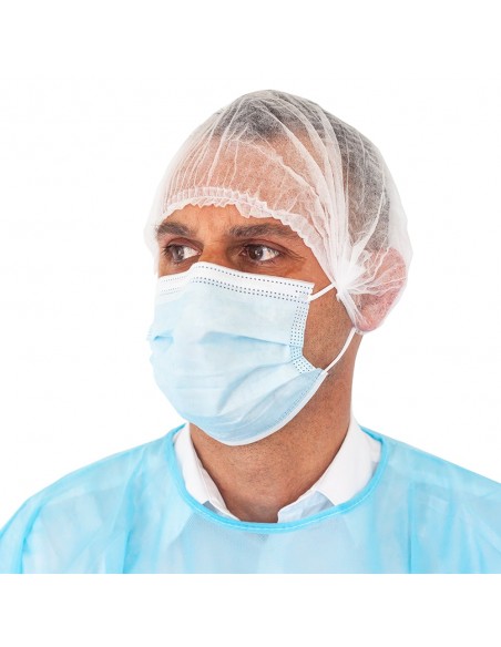 The surgical mask is intended to avoid, when exhaling the wearer, the projection of secretions from the upper airways or saliva that may contain infectious agents transmissible by "droplets" or "airborne".