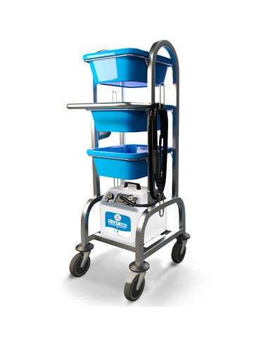 - Carro ergonómico con 4 ruedas giratorias, 2 de ellas con freno