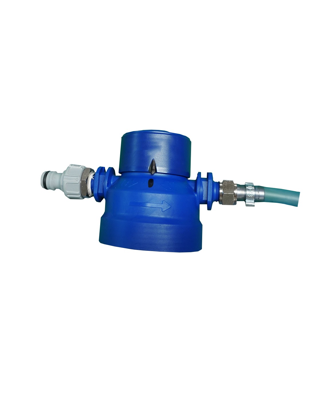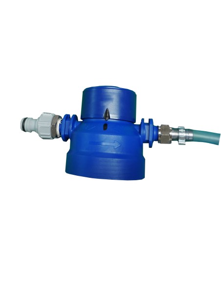 - Raccord rapide Gardena à l'entrée : Pour faciliter la connexion, avec un tuyau cristal de 70 cm à la sortie.