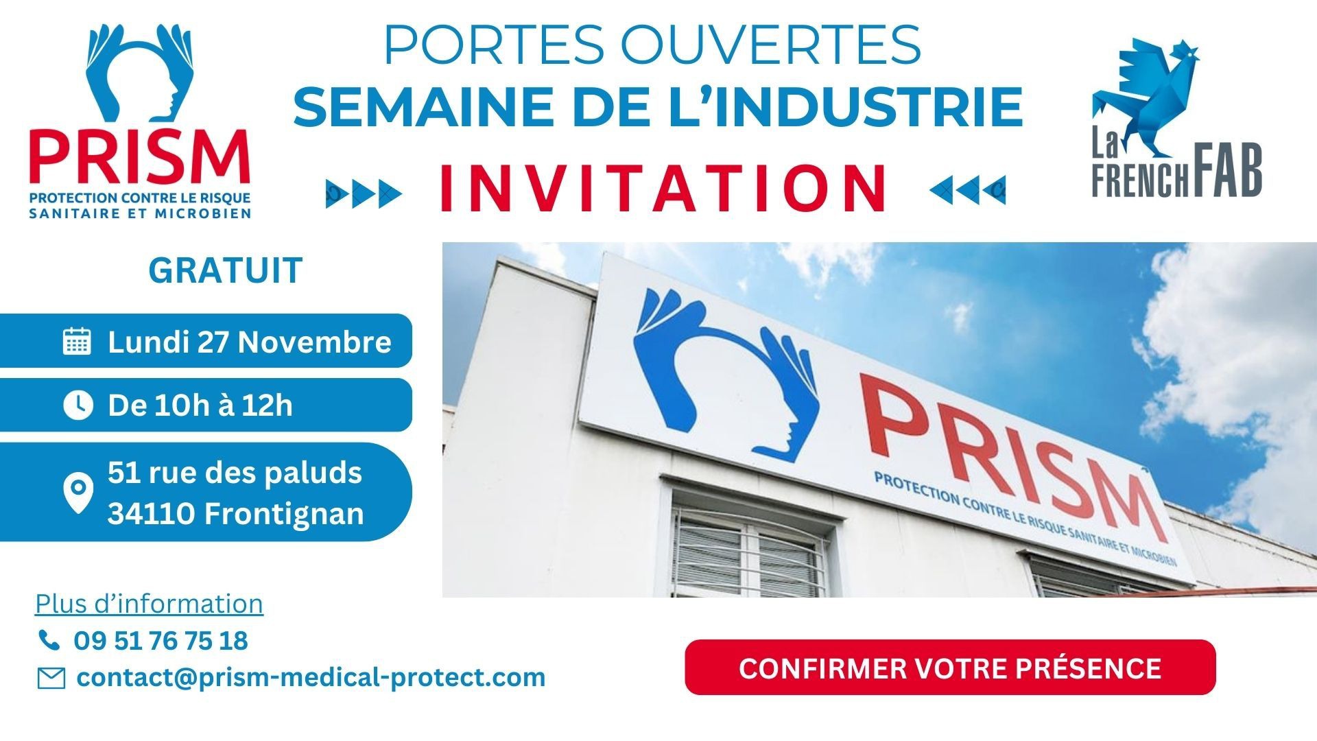 À l'occasion de la Semaine de l'industrie, du 27 novembre au 3 décembre, les industriels, les écoles et les centres de formation ouvrent leurs portes pour faire découvrir leurs métiers. PRISM prend part à l'événement et organise une visite libre de son usine, le lundi 27 novembre de 10 heures à midi.