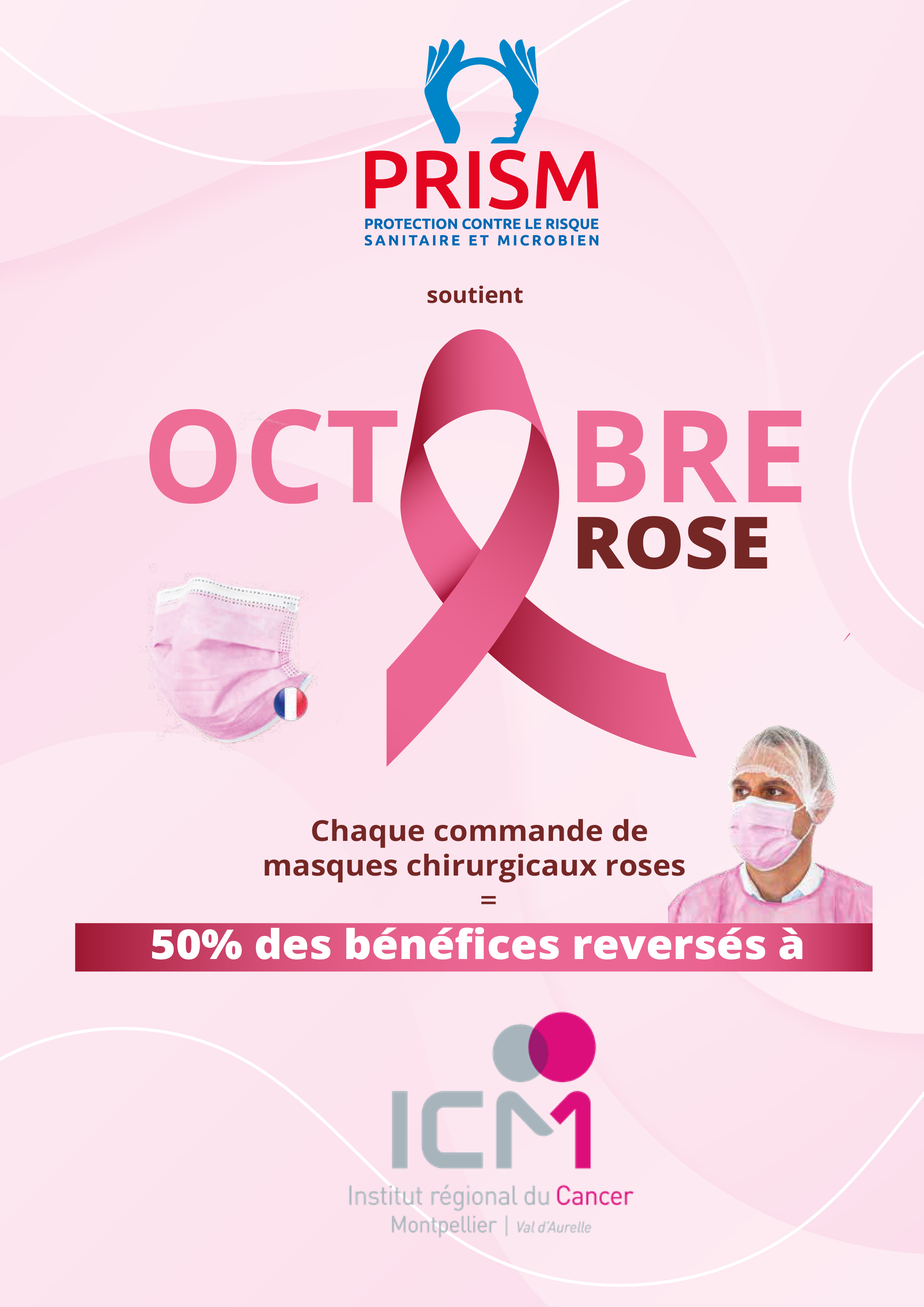 Cette année, à l'occasion d'Octobre Rose, PRISM soutient la lutte contre le cancer du sein. PRISM est fier d'annoncer que 50% des bénéfices de toutes les commandes de masques chirurgicaux roses seront reversés à l'Institut du Cancer de Montpellier (ICM).
