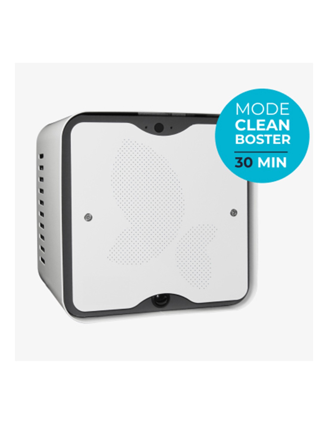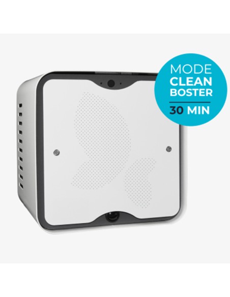 - Le mode 2, Clean Booster, élimine en seulement 30 minutes les micro-organismes présents dans l’air (virus, bactéries, etc.) et les odeurs indésirables pouvant être incrustées dans les textiles ou les moquettes. Ce traitement de fond génère une quantité plus importante d’oxygène actif, permettant une efficacité optimale lorsque la pièce est inoccupée.